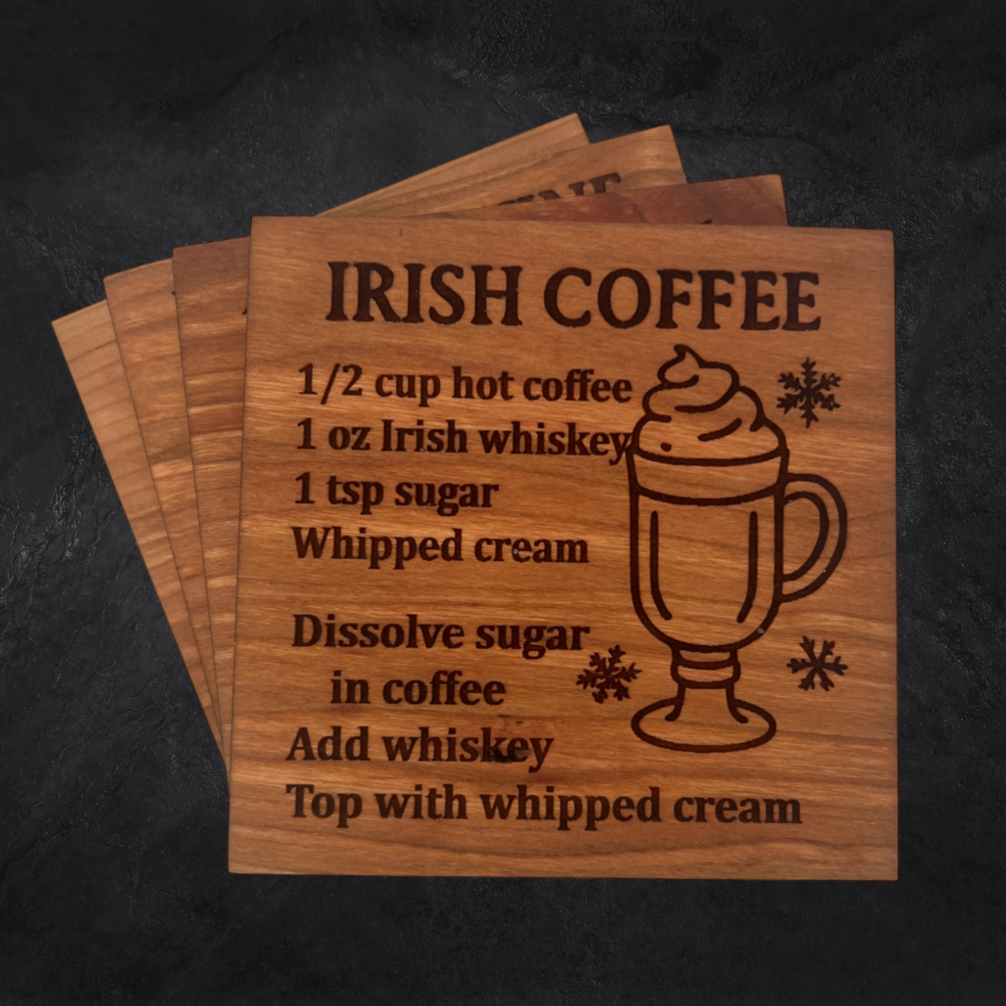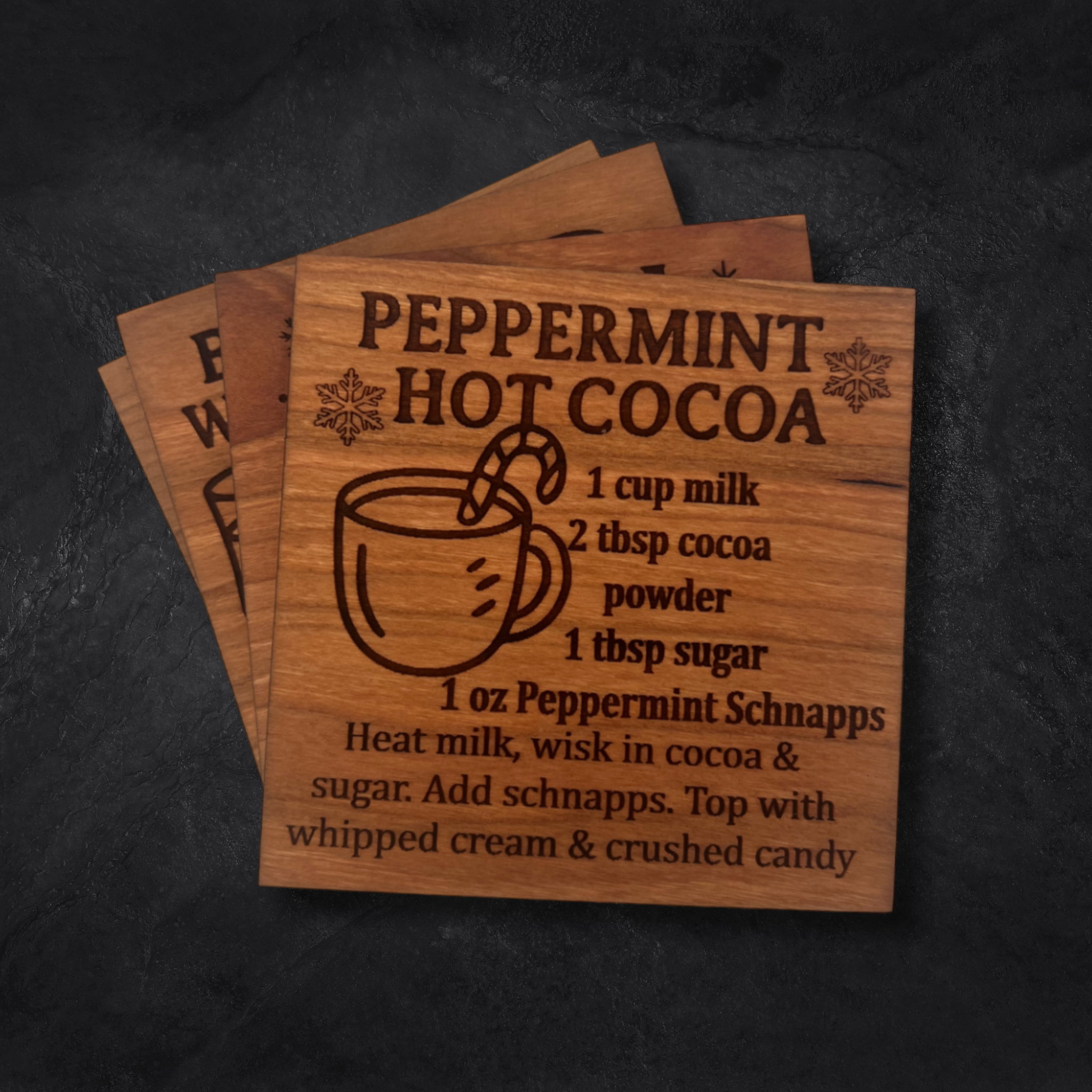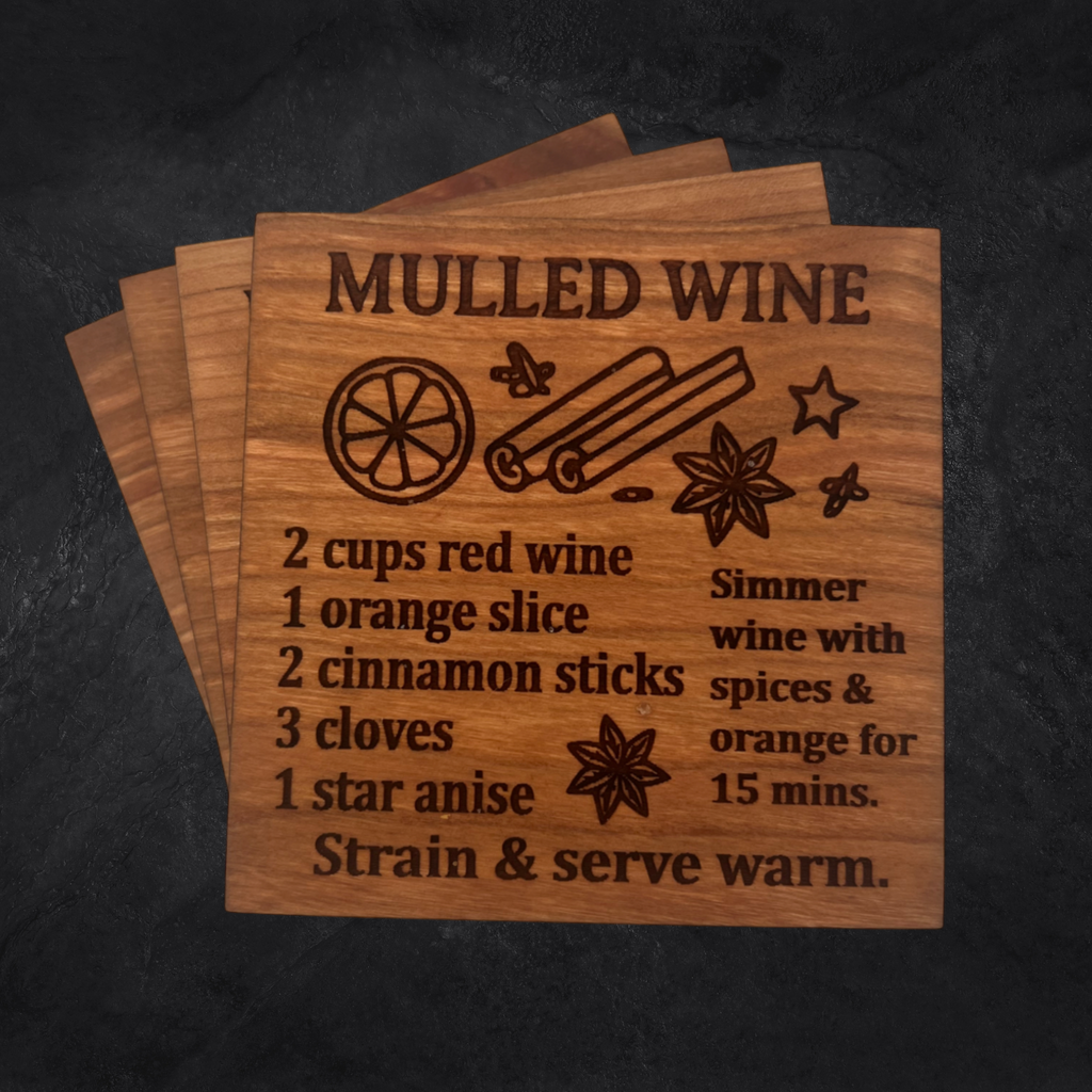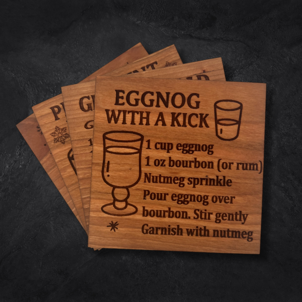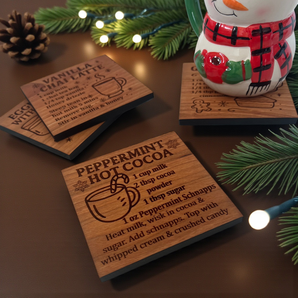Bring joyful sips to your celebrations with the Cheers to Christmas Drink Coaster Set – a merry collection of four engraved hardwood coasters featuring beloved holiday drink recipes. Whether you're entertaining guests or unwinding by the fire, these coasters bring warmth, style, and festive flair to every pour.