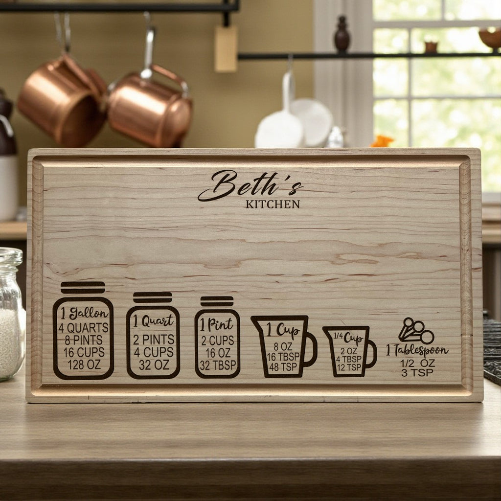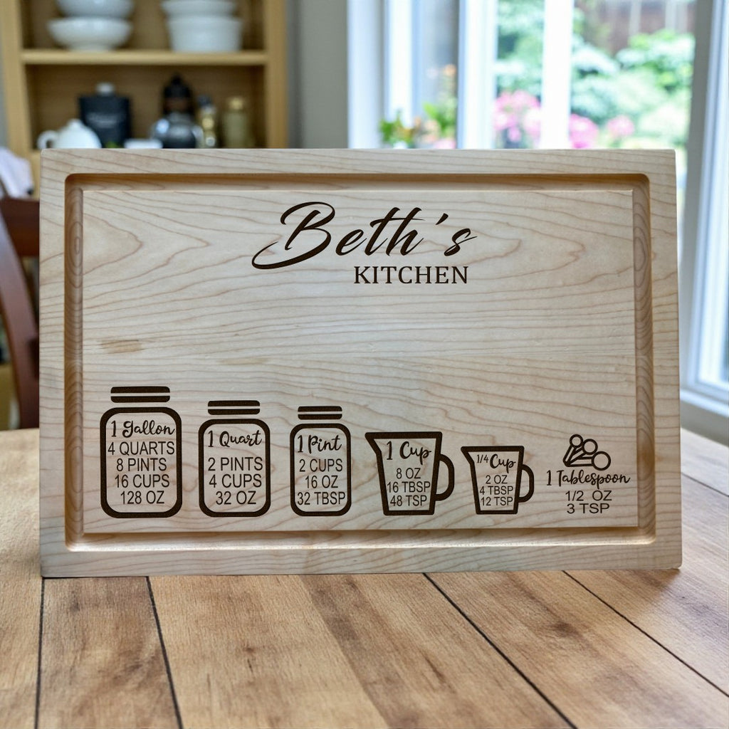 This Kitchen Conversions Cutting Board is built of durable and solid wood construction and is meant to last long. The Kitchen Conversions Cutting Board is perfect for chopping meats, fruits and vegetables for example. The natural food-grade oil finish helps to seal the cutting board and protect it from harmful bacteria. Durable and sturdy, this Kitchen Conversions Cutting Board is an elegant and functional addition to your home for years to come.